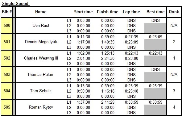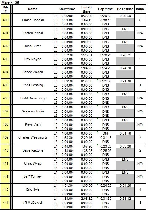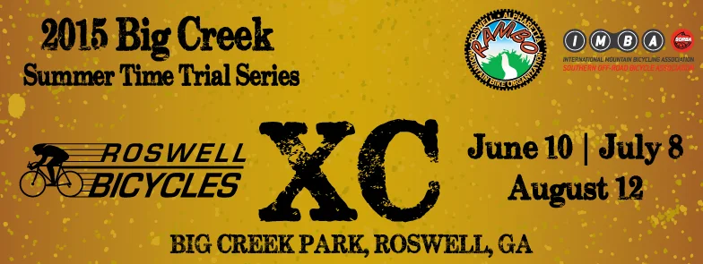Summer TT Series | Roswell Bicycles XC #2 Wednesday, July 8, 2015 6:00 PM 8:00 PM 18:00 20:00 Big Creek Park 1600 Old Alabama Rd Roswell, GA, 30076 United States (map) Google Calendar ICS Round 2 Race Results View fullsize Men under 35 View fullsize Single Speed View fullsize Men over 35